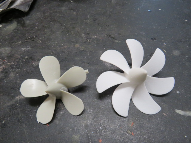 Skipjack kit's early pattern 5 blade prop to the later pattern shark